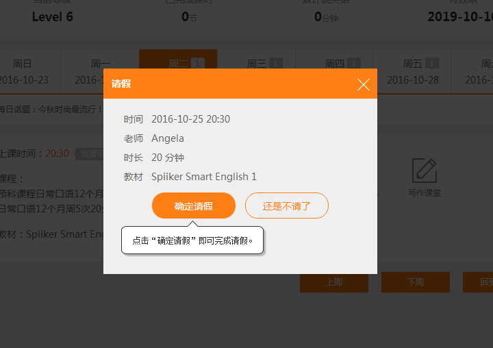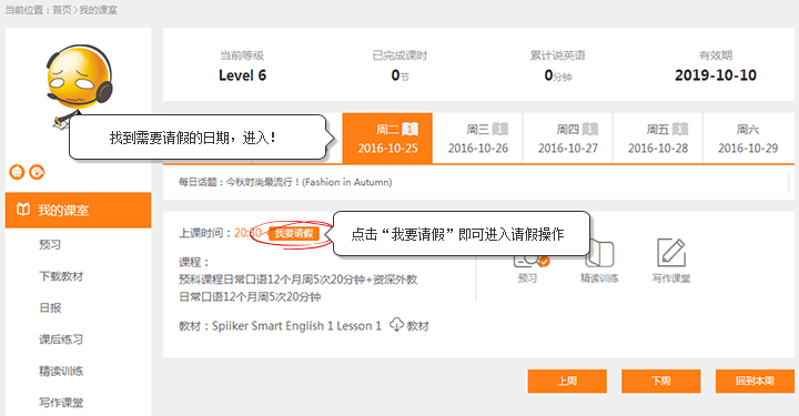 方案二:当天实在无法抽空上课,取消课程进行请假延课。每个学员在每个自然月有2次请假延课的机会。请假操作非常便利,可以直接联系客服老师(400-009-2911)进行,亦可通过网站“我的课室”中的“我要请假”功能实现。